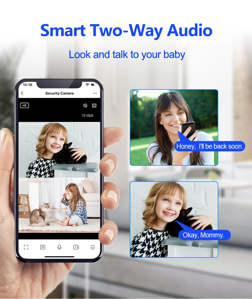 Support two-way intercom, you can talk and listen with the phone app. Even if you are in another city or another country, you can still communicate with your baby at home.