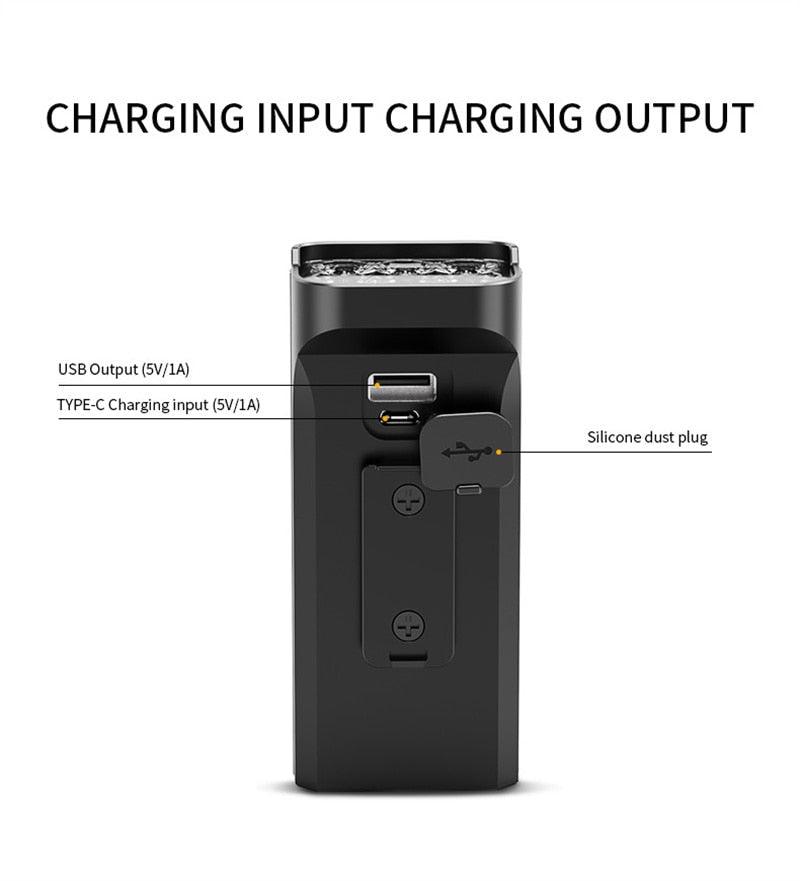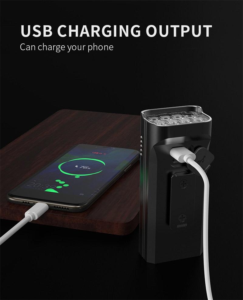 • POWERFUL AND USB:   USB rechargeable bicycle light set with built-in powerful rechargeable batteries. No wires or external battery accessories needed. Max output 5000 lumens , light your way max up to 1640ft . Ensure you stay visible the road and cycle safely. Portable, powerful and convenient. 4 hours on high brightness working mode. 10 hours on low brightness working mode.