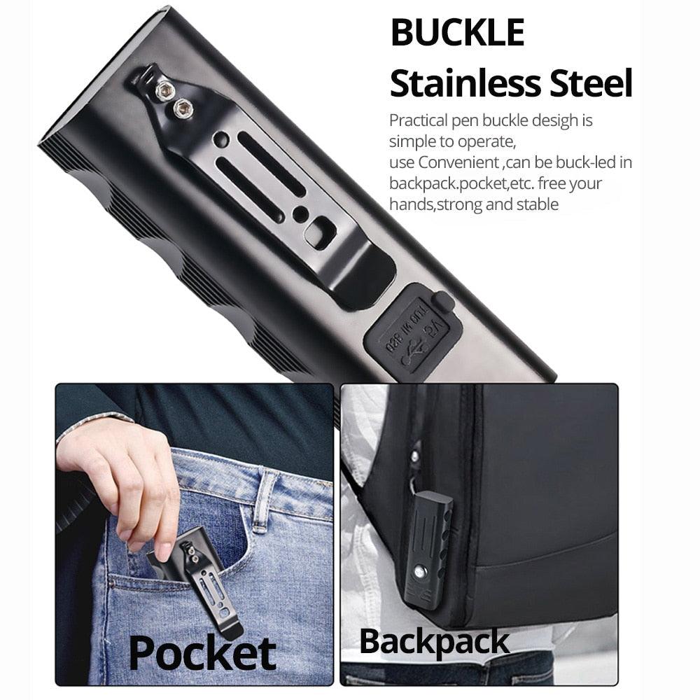 • HIGH-QUALITY MATERIAL: The sturdy aluminum housing can withstand a 4ft drop; Lateral anti-slip design and lightweight materials mean that you can use it as a handheld flashlight for riding, running, hiking, camping, walking dogs, emergency