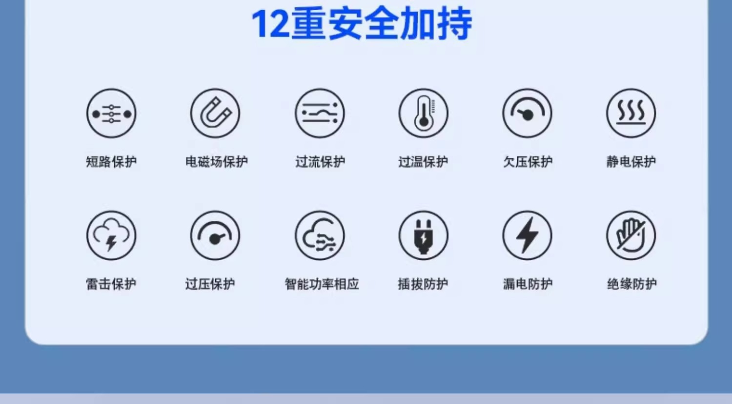 Comprehensive protection: Surge/Short-Circuit/Over-current/Over-voltage/Leakage