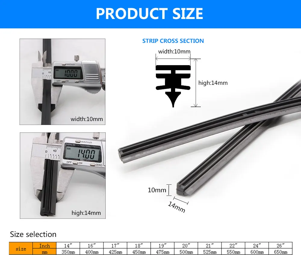 Car Wiper blade Windscreen Strips 14"16"17"18"19"20"21"22"24"26"28" 10mm FR Insert Natural Rubber Refill Strip Car Accessories