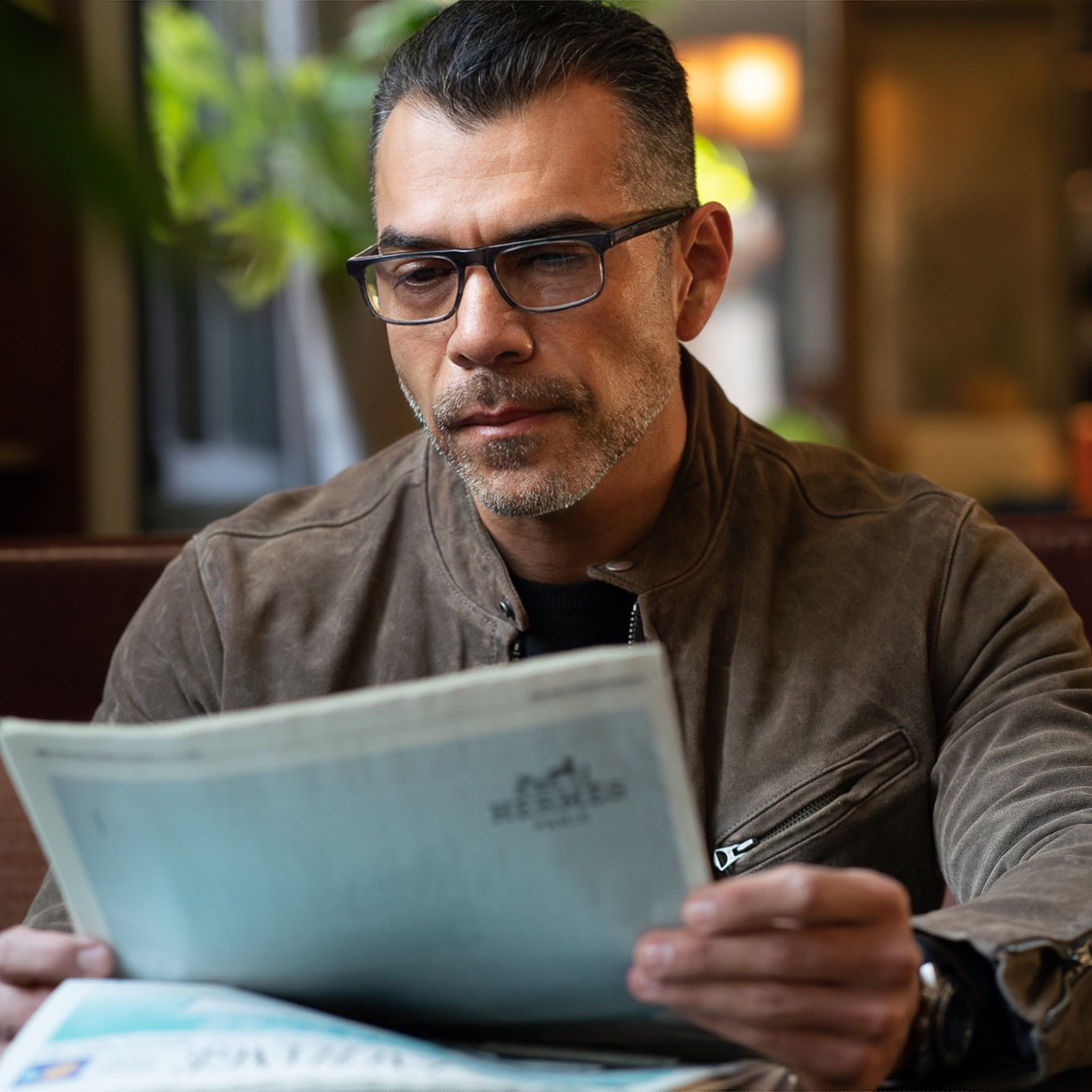 At the computer from morning to night? It's time to upgrade your reading.  Our premium frame + lens materials in a wide width frame with extra-long 150 mm temples, makes for comfortable wear + comfortable reading.  Perfect for big guys who want to style sophistication + work at the top of their game.