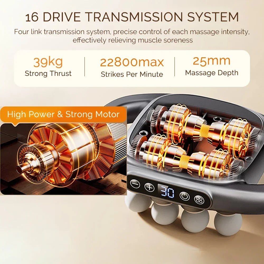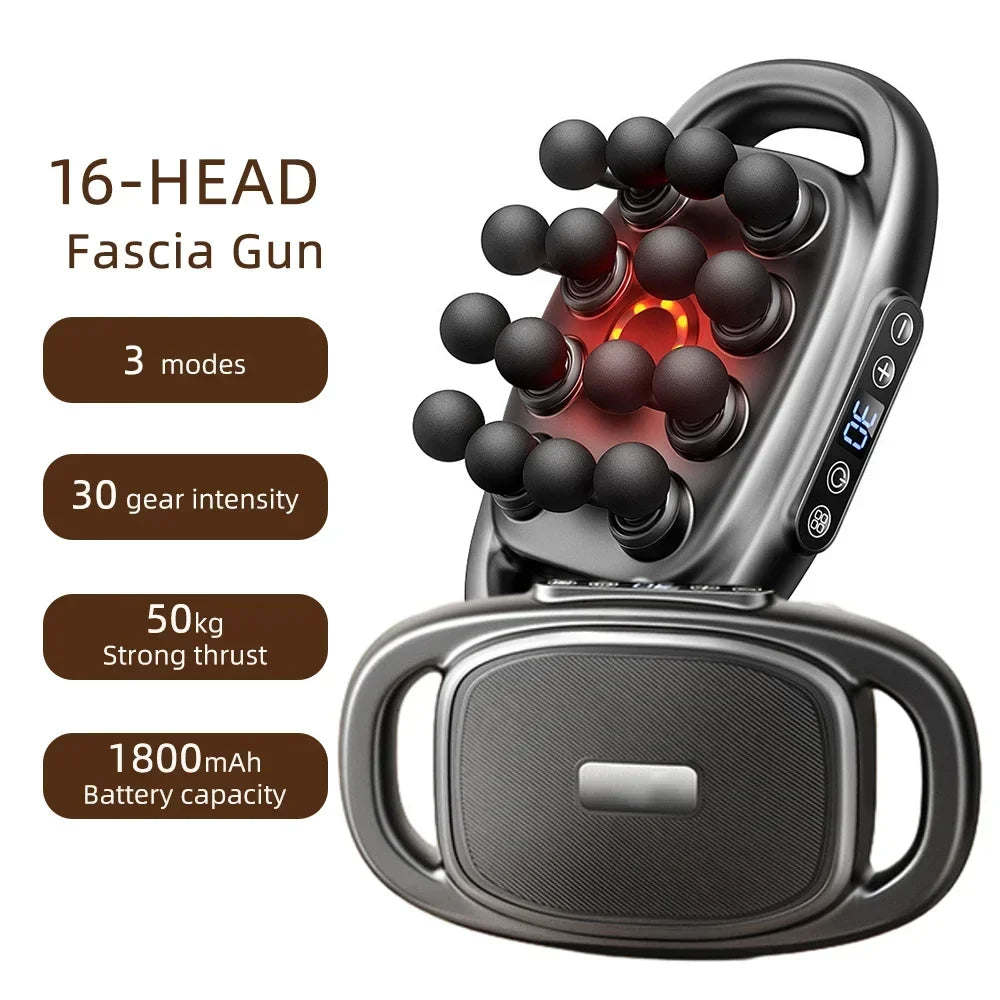 High-Power 16 Head Percussion Massage Gun - 48kg Deep Tissue Relief for Athletes & Fitness Enthusiasts Body Massager