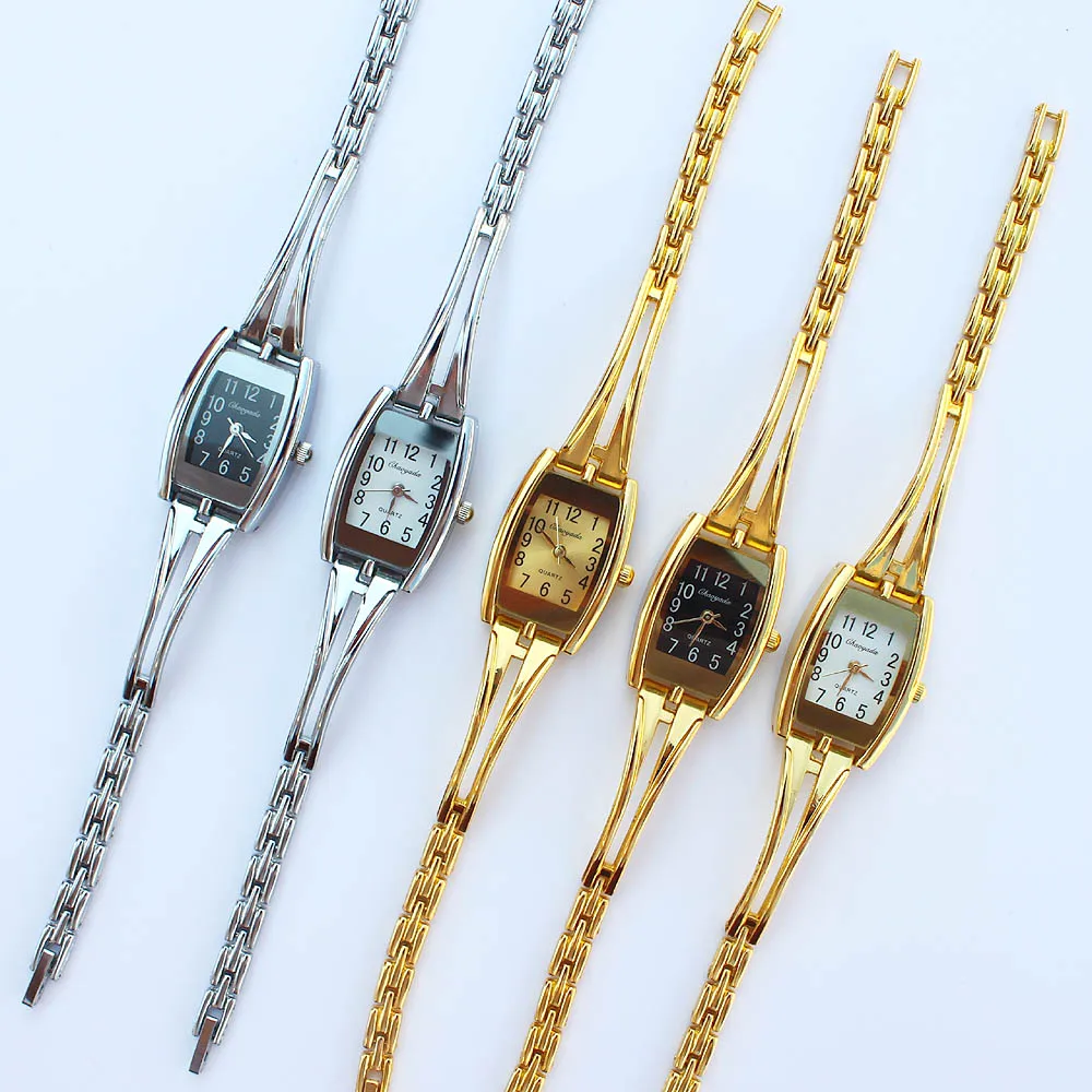 High Quality Cute Women's Fashion Crystal Silver Gold Lady Women Girl Stainless Steel Strap Quartz Analog Dress Wristwatch