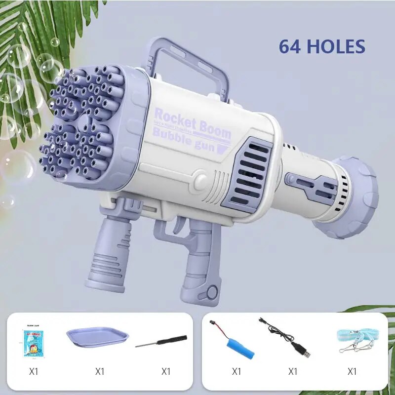 1、Powered by lithium battery: Interesting leaf blower that produces a stream of bubbles. With realistic design and fresh colors, this toy bubble blower is what you need. tap the bubble liquid and pull the trigger, a lot of bubbles will be ejected!