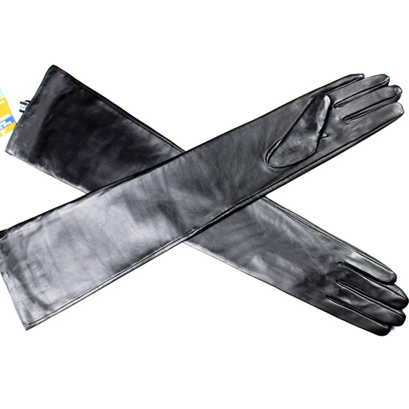 58cm long women's leather gloves, using high-quality natural animal sheep skin suede material, soft and delicate leather. With velvet lining, it is suitable for autumn and winter wear.
