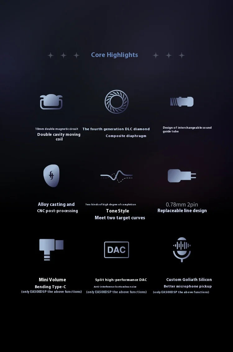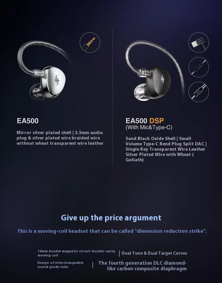SIMGOT EA500 DSP Wired Earphones With Mic Dual-Magnetic-Circuit Dual-Cavity HiFi Stereo Music Headphone Custom Gaming Earbuds