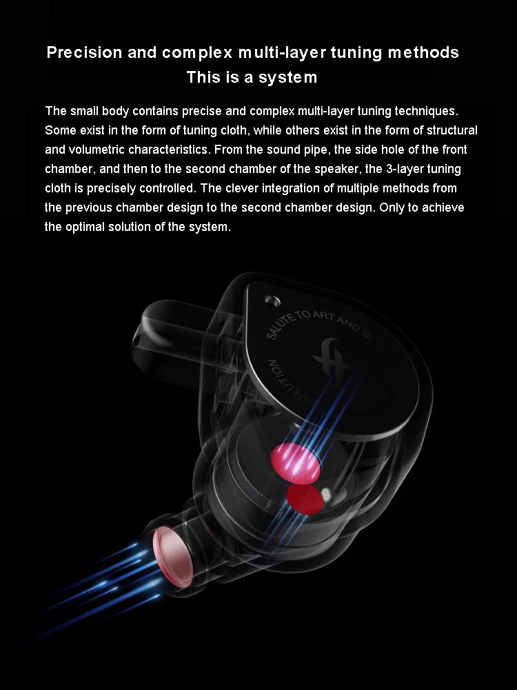 chamber, and then to the second chamber of the speaker, the 3-layer tuning cloth is precisely controlled. The clever integration of multiple methods from the previous chamber design to the second chamber design. Only to achieve