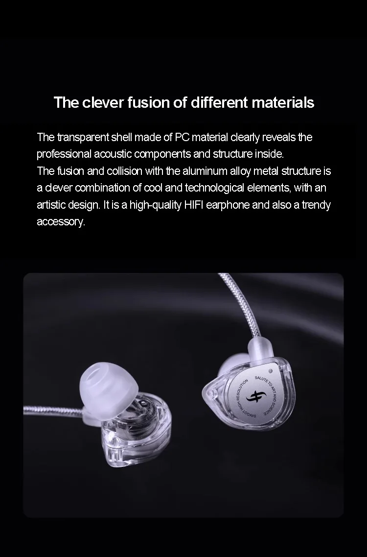 The fusion and collision with the aluminum alloy metal structure is a clever combination of cool and technological elements, with an artistic design. It is a high-quality HIFI earphone and also a trendy accessory.