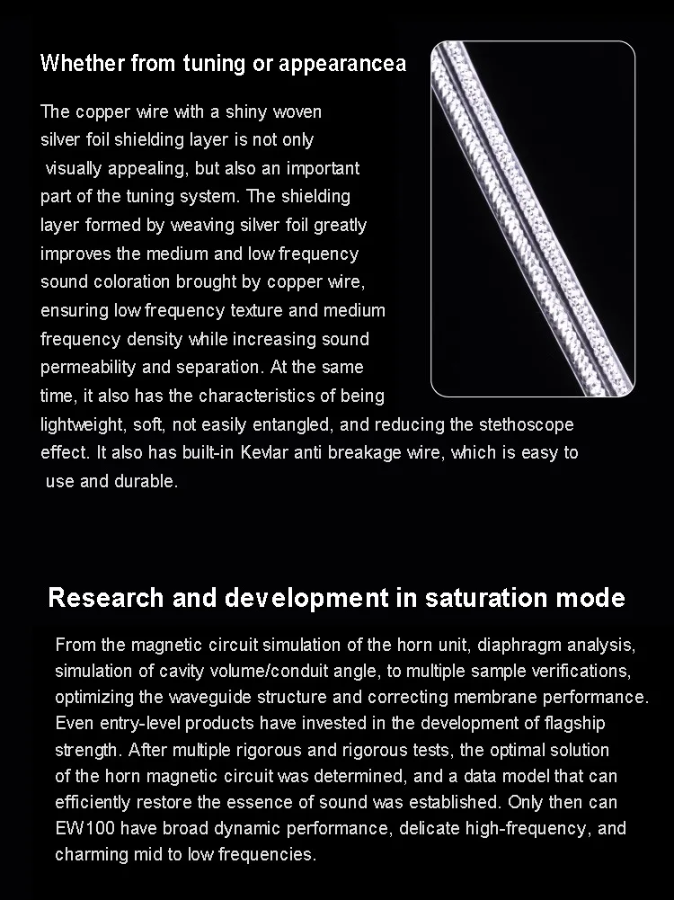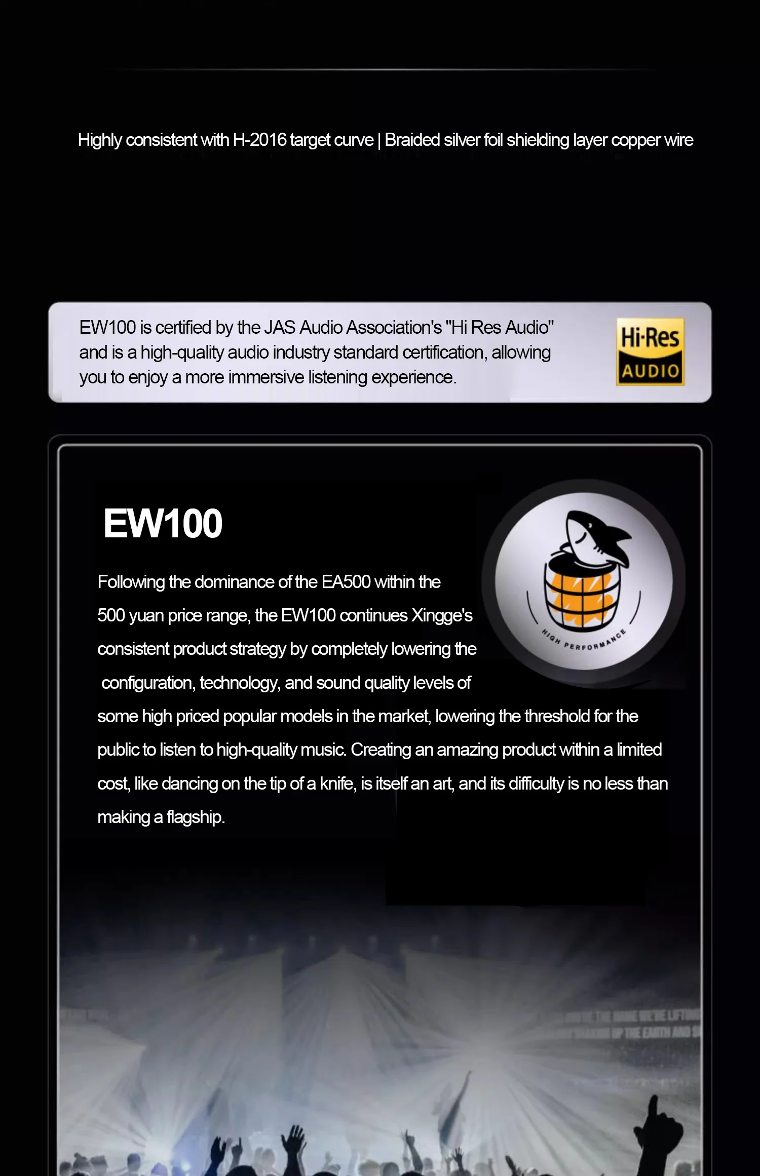 EW100 have broad dynamic performance, delicate high-frequency, and charming mid to low frequencies.
