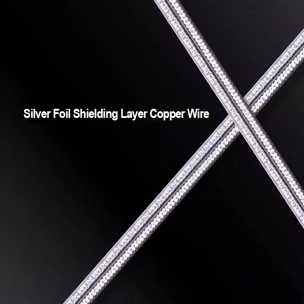 The copper wire with a shiny woven silver foil shielding layer is not only visually appealing, but also an important part of the tuning system. The shielding layer formed by weaving silver foil greatly improves the medium and low frequency sound coloration brought by copper wire, ensuring low frequency texture and medium frequency density while increasing sound permeability and separation. At the same time, it also has the characteristics of being lightweight, soft, not easily entangled, and reducing the stethoscope effect. It also has built-in Kevlar anti breakage wire, which is easy to use and durable.