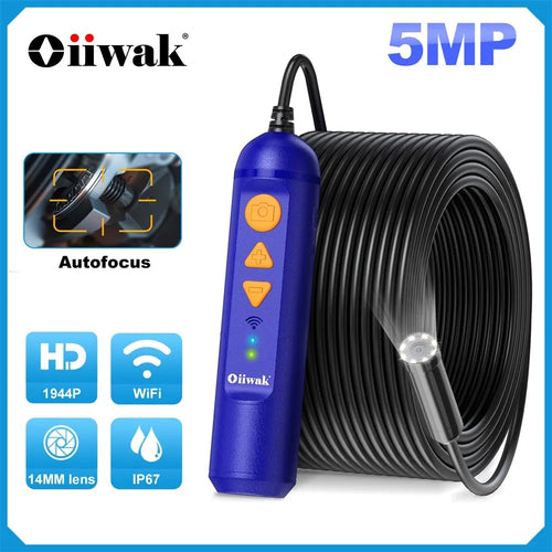 Oiiwak WiFi Endoscope Camera 5MP Auto Focus Wireless Borescope 1944P 14mm Pipe Sewer Plumbing Snake Camera Mini Camera