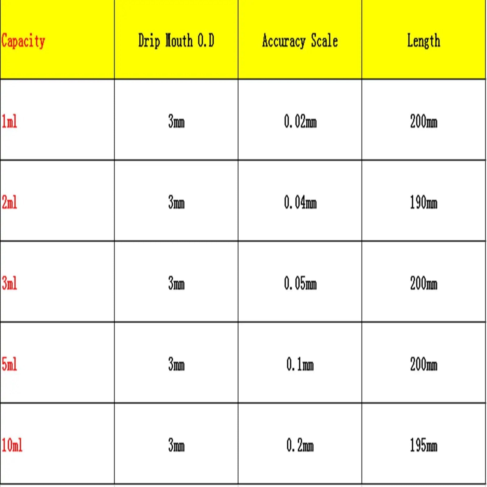 Capacity:1ml,2ml,3ml,5ml,10ml