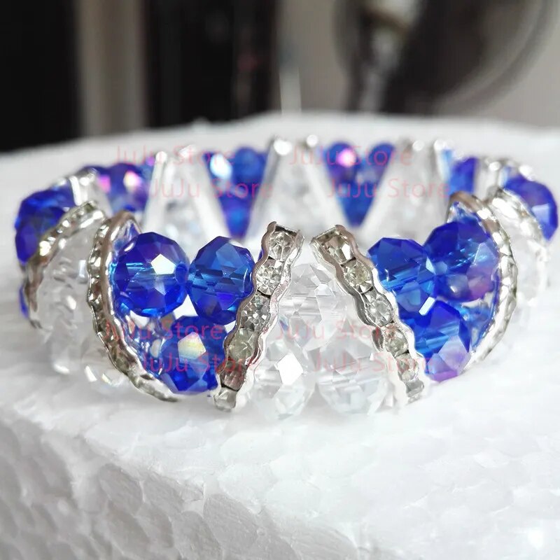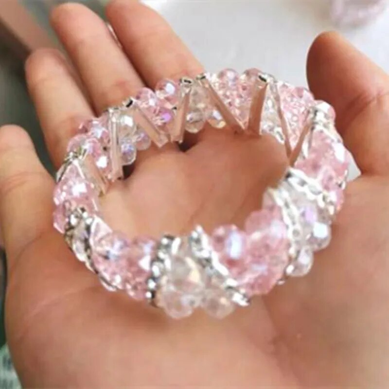 Fashion Handmade FACETED CRYSTAL GLASS ELASTIC Women's Beads Jewelry Bracelet gcb1040