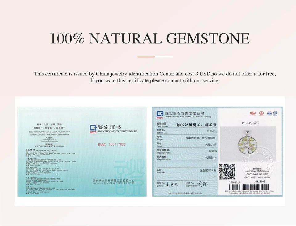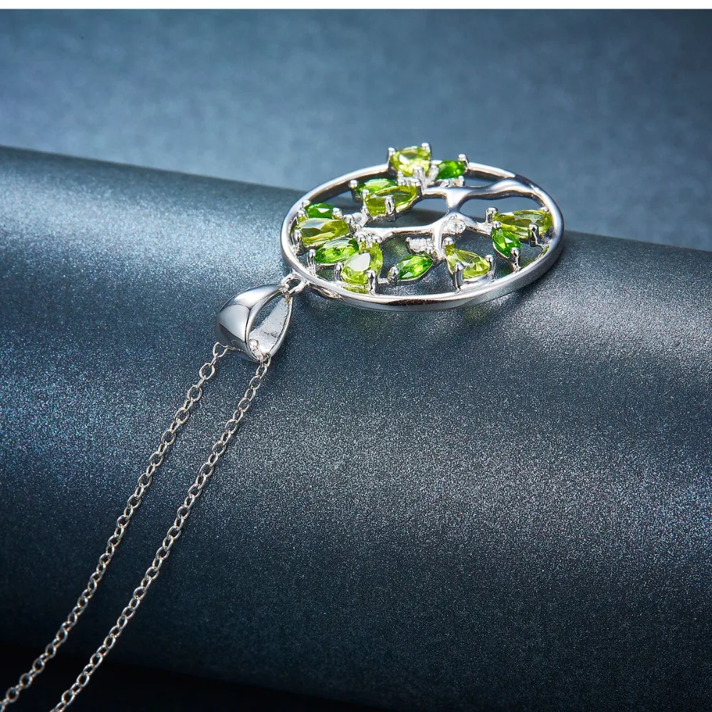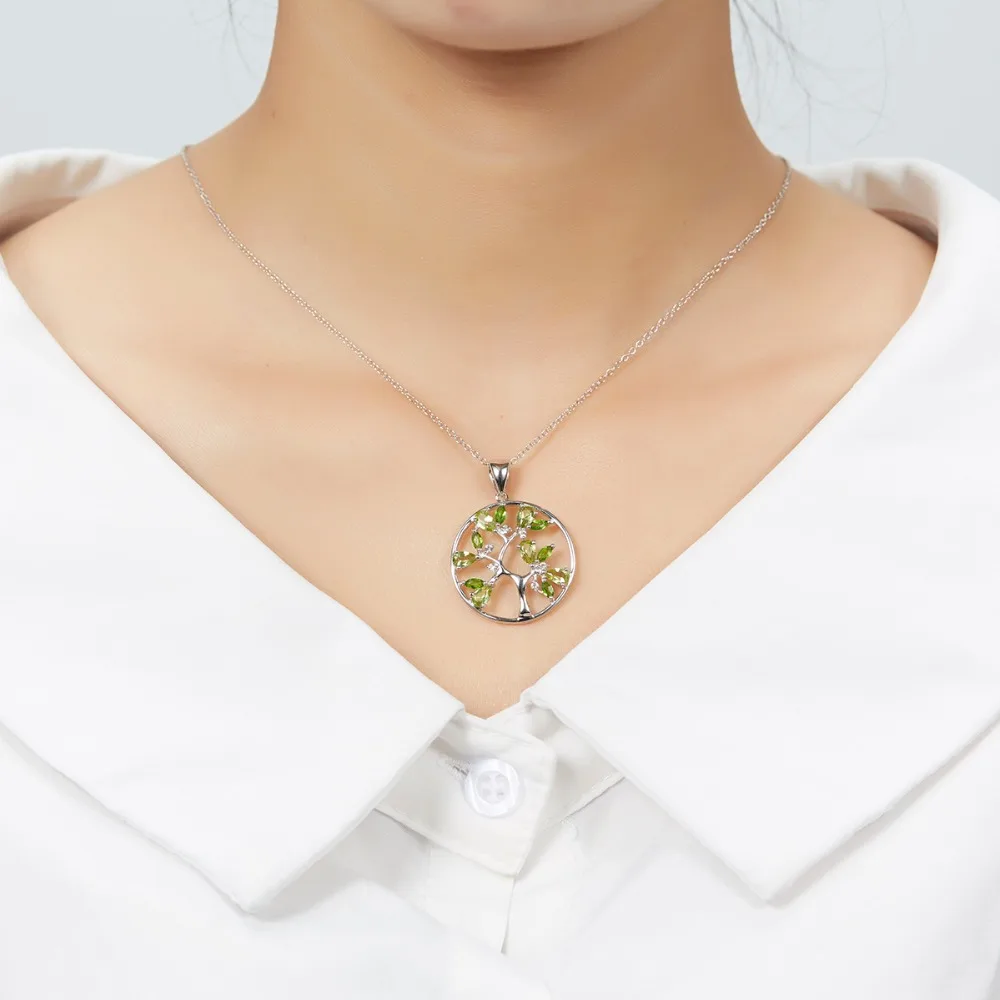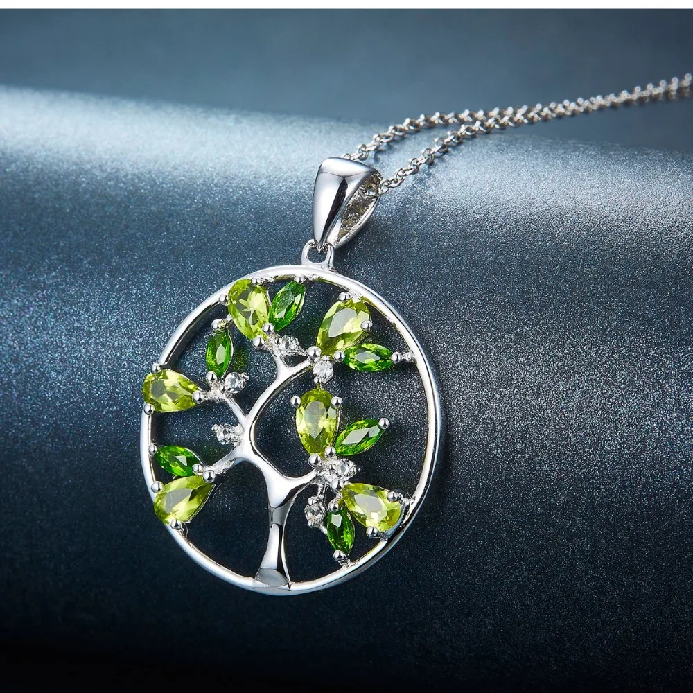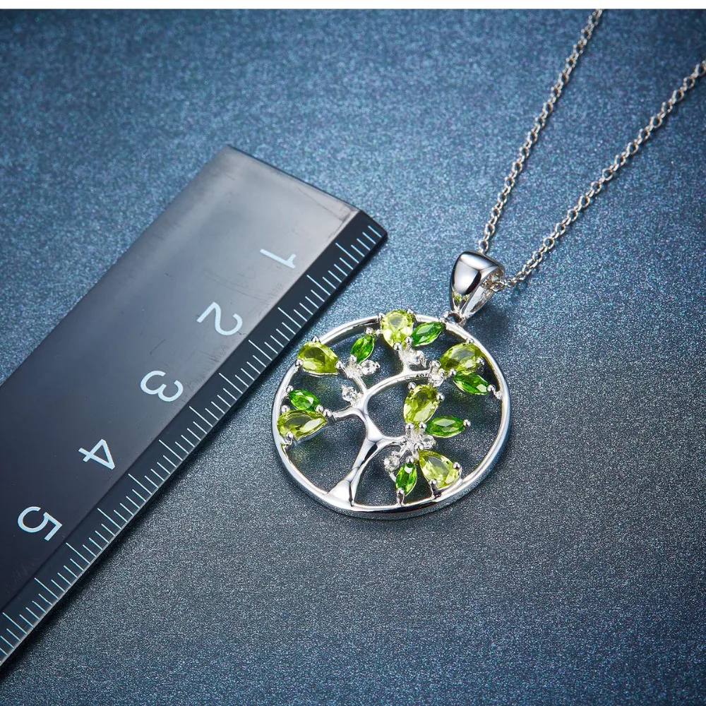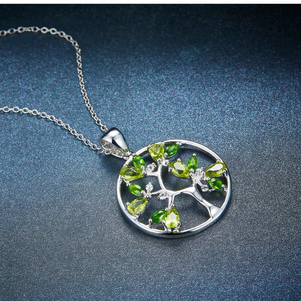 Genuine Peridot Tree Pendant 925 Sterling Silver Chain Diopside Gemstone Classic Style Fine Jewelry for Women's Birthday Gift