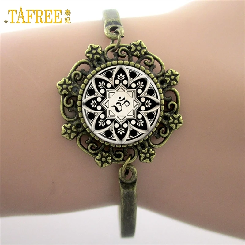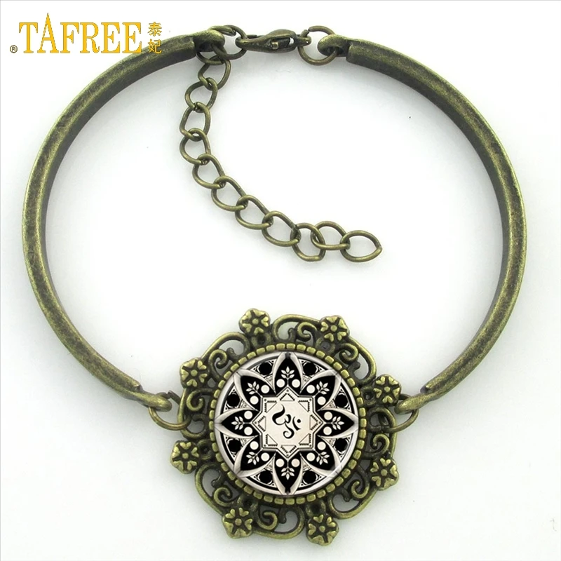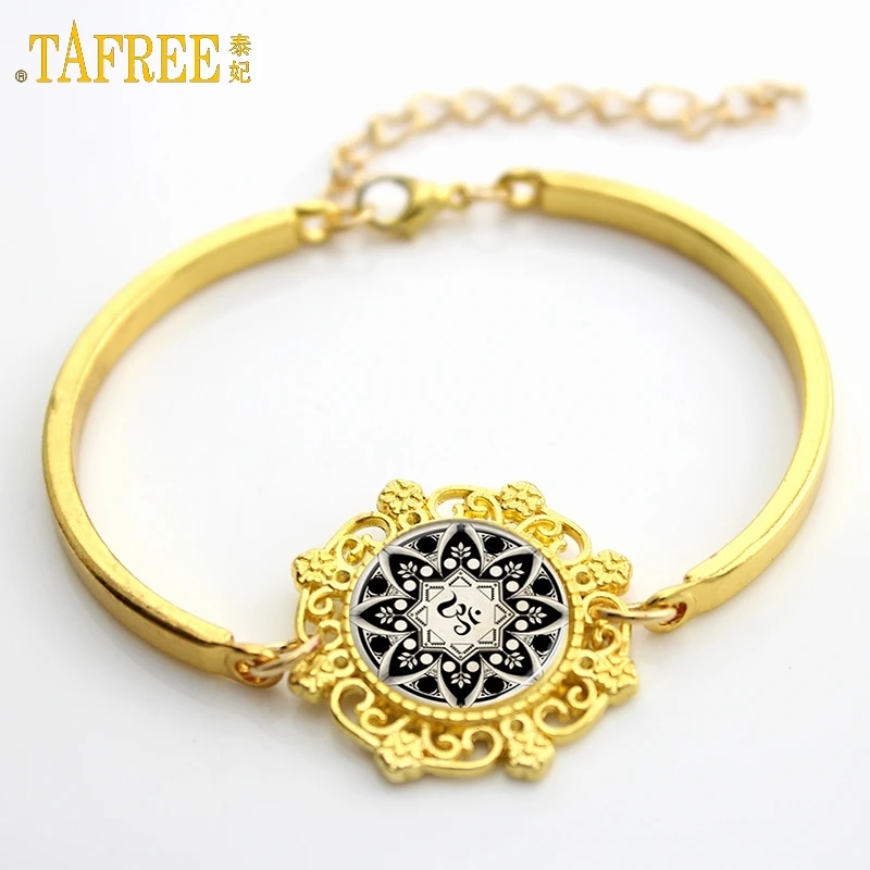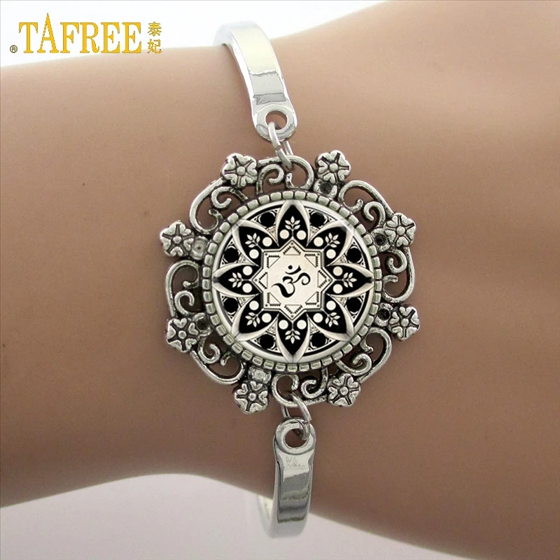 TAFREE Brand Yoga Picture Glass Cabochon Dome Lace Flower Charm Bracelet Women's Love Christmas Gift Good Quality Cuff Bangles