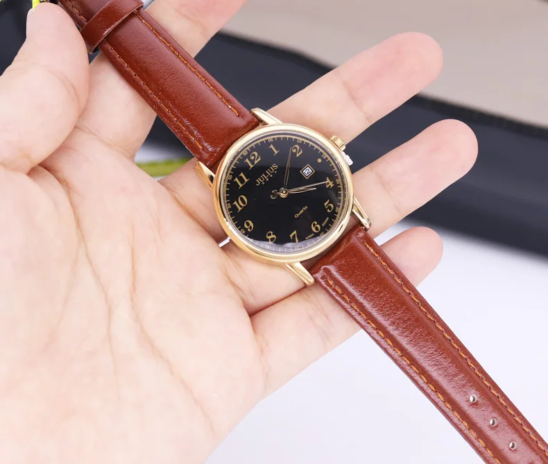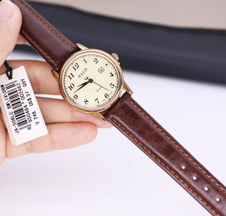 Top Julius Women's Watch Japan Quartz Hours Auto Date Fine Fashion Woman Clock Real Leather Strap Girl's Retro Birthday Gift Box