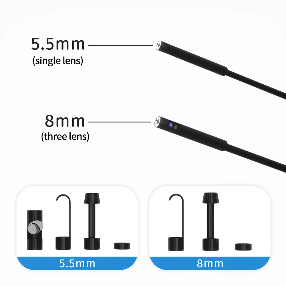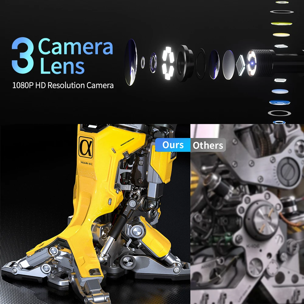 ⭐ TRIPLE LENS ENDOSCOPE CAMERA:  Different from traditional endoscopes, we built two 70-degree HD cameras on both sides of the front camera, making it wider and clearer. One button to easily switch between different angles, you can easily view between front and side.