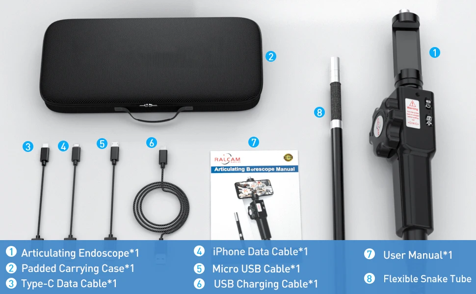 🔎【COMPATIBLE with iPhone & ANDROID】:This Endoscopes are compatible with all iOS and Android mobile electronic devices. Simply download the app and connect it to your smartphone to start your inspection journey.