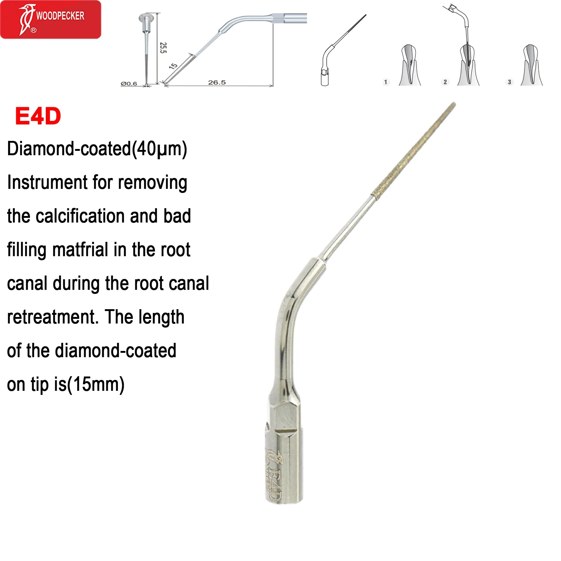 ā¢Diamond-coated instrument for removing the calcification and bad filling materiel in the root canal during the root canal retreatment.