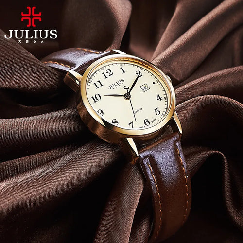 Top Julius Women's Watch Japan Quartz Hours Auto Date Fine Fashion Woman Clock Real Leather Strap Girl's Retro Birthday Gift Box