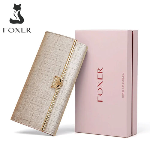 FOXER Brand Women's Split Leather Long Wallet Lady Luxury Clutch Bags Coin Purse Female Fashion Credit Card Holder Festival Gift