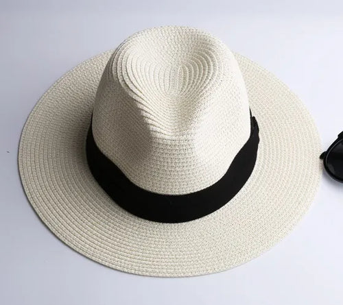 LNPBD Summer fashion white flat brim wide brim women's strawhat women's jazz fedoras hat sun-shading hat beach cap summer