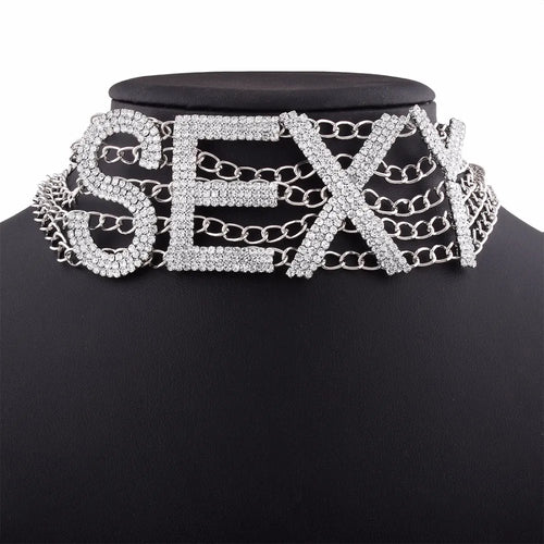 Rhinestone Choker Necklace Luxury Fashion Crystal Jewellery Sexy Word Chocker Bling Glam Sparkly Women's Jewelry Accessories