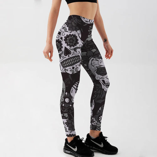 Qickitout Leggings Fitness Slim Women's Black&White skull mas Legging Sexy Fashion Stretch Digital Print Pants Cool Trousers