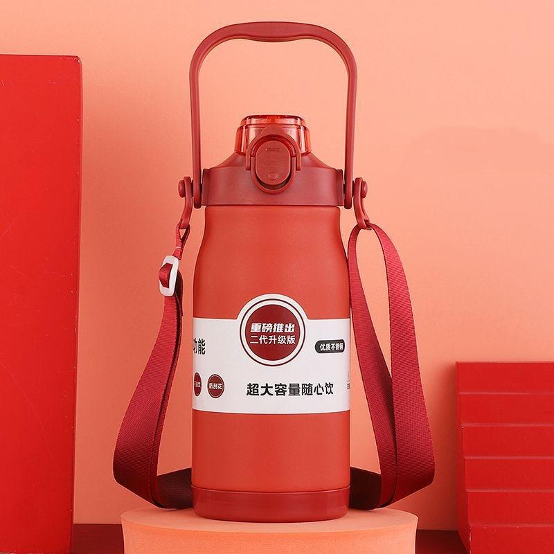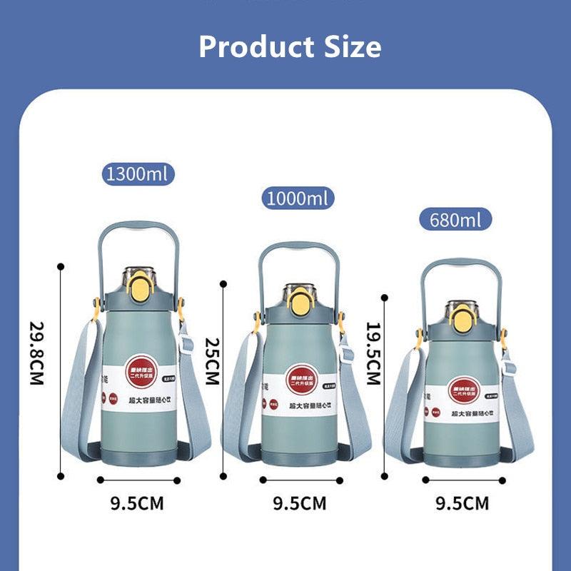 1000ml/1300ml Double Stainless Steel Sport Vacuum Flask With Straw Portable Thermos Mug With Strap Thermal Water Bottle Tumbler Sports Water Bottle. Stainless Steel Insulated Tumbler Large Capacity With Straw Water Bottle For Outdoor Sports Travel