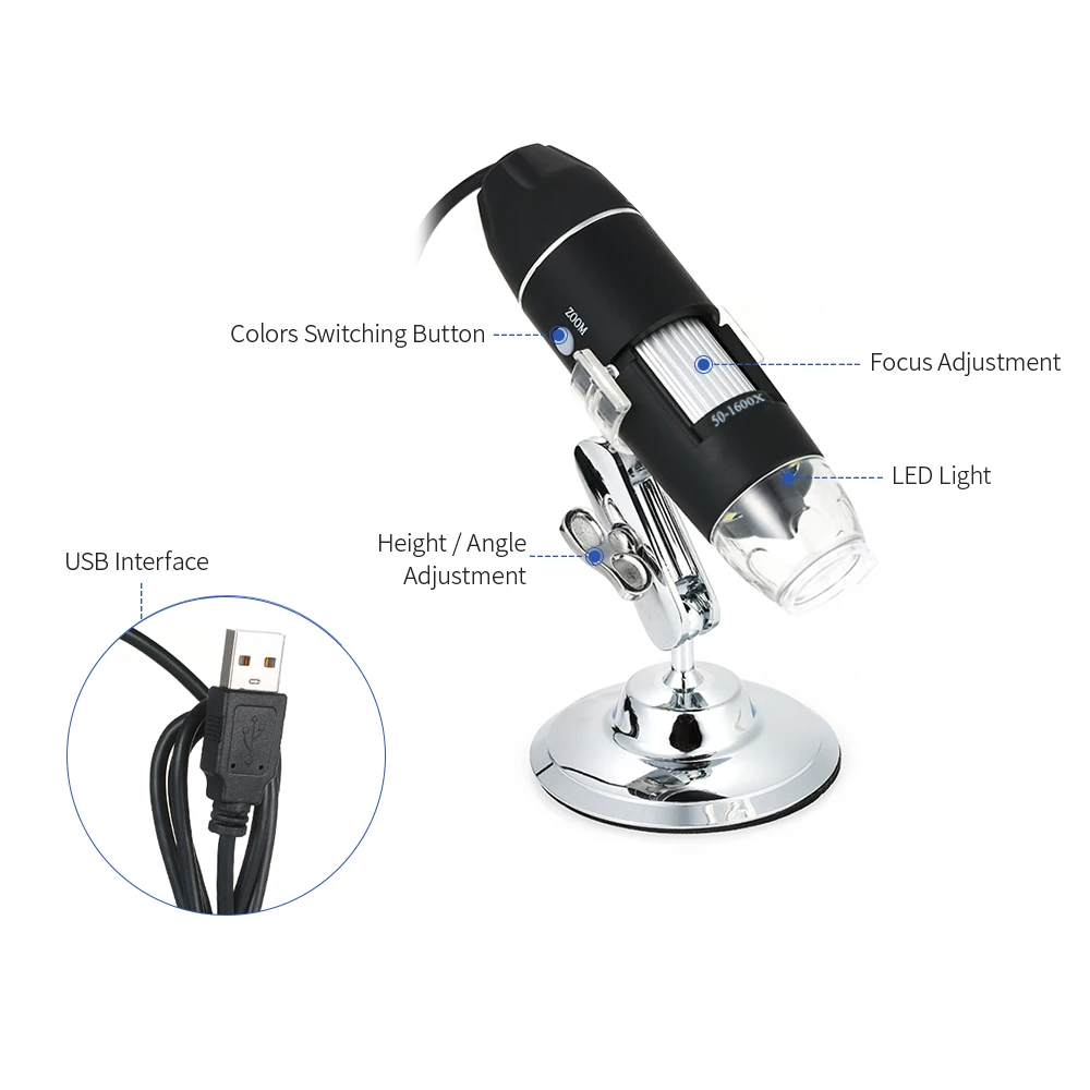 Built-in 8 LED lights and adjustable illumination, 0.3MP Camera, adjustable Magnification Ratio, 0X to 1000X offers you a wonderful experience of recording a clear microworld.