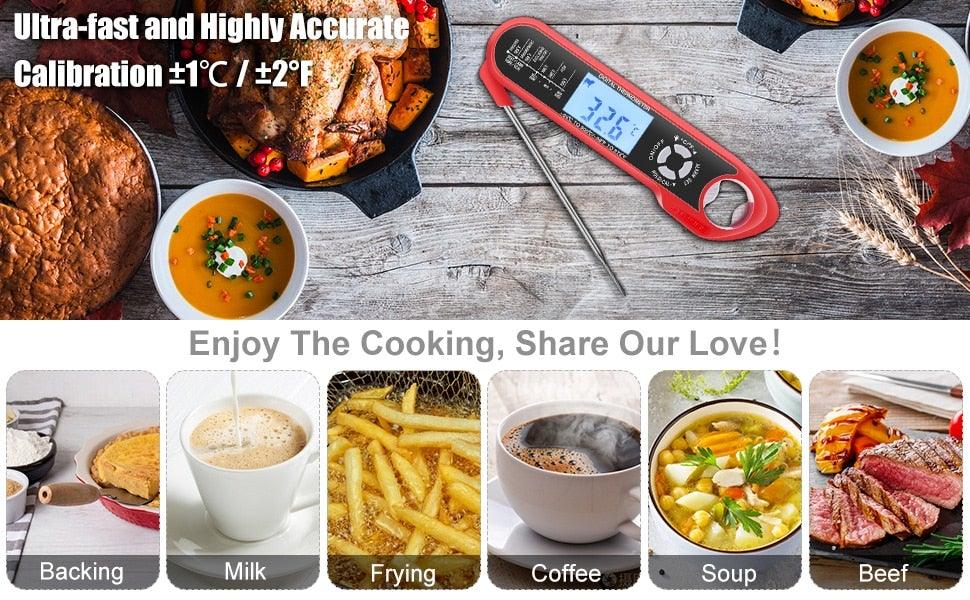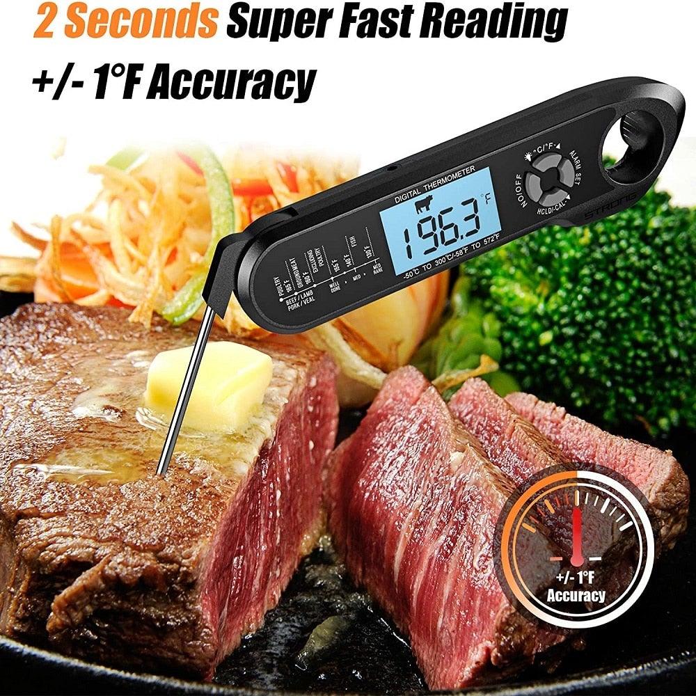 - INSTANT READ AND ACCURATE- digital meat thermometer probe is 3.5mm in diameter, keeping it in food for 1-3 seconds, you will get the accurate temperature (±1°C/±2°F) and has a wide range of -50℃ to 300℃ (-58℉ to 572℉). Whether to frying, grill or baking, this meat thermometer will make cooking easier.