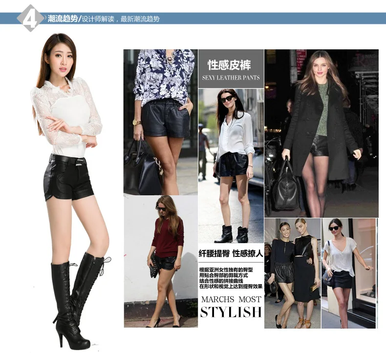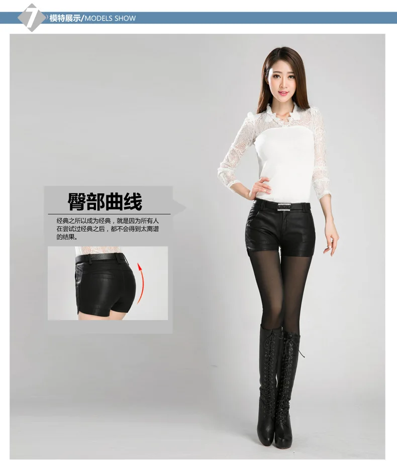 Free Shipping 2022new arrival Women's spring Fashion PU Leather Shorts Pants Lady's Mid-Waist Short sexy Pants