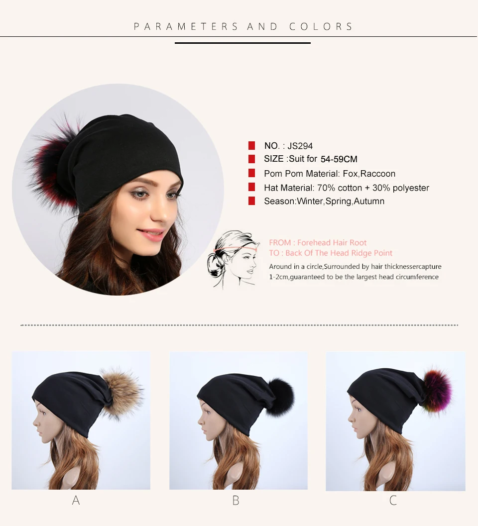 • Product Name:Geebro Brand Women's Beanie Hat Casual Cotton Pompom Beanies Hats Raccoon Fox Fur Pompon Skullies Balaclava Caps For Women JS294