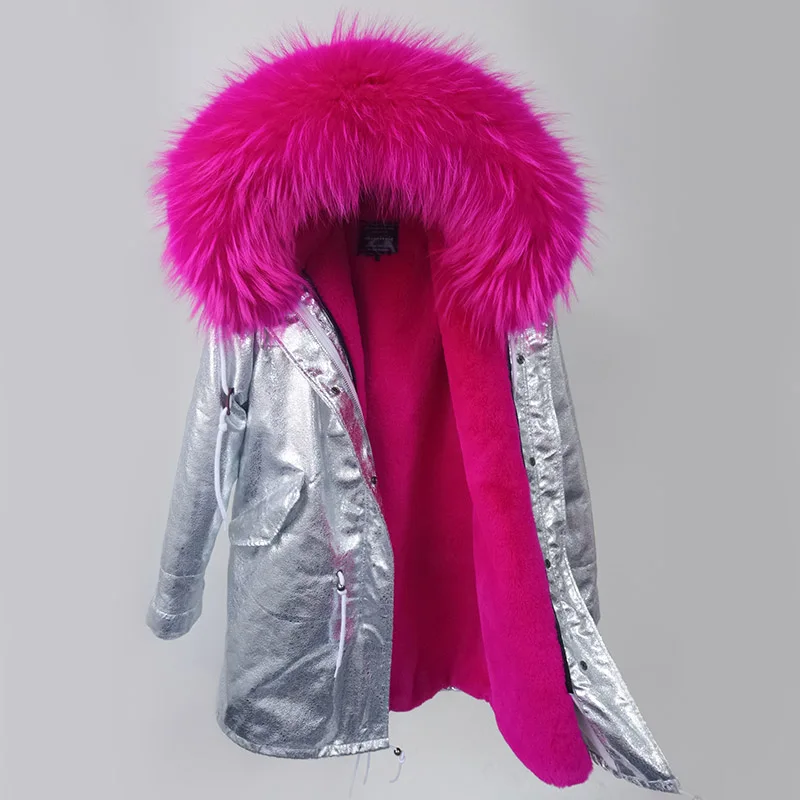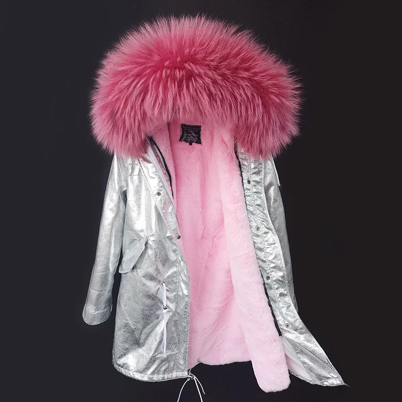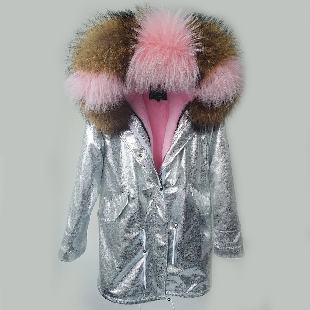 MAOMAOKONG Women's Jackets Winter Parka Large Natural Real Raccoon Fur Collar Women Winter Coat