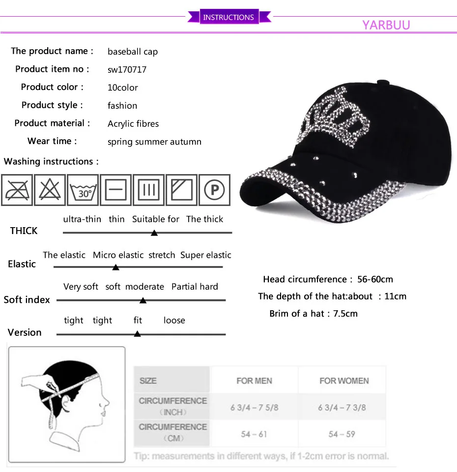 [YARBUU]Baseball Caps 2022 New Fashion Style Men And Women's Sun Hat Rhinestone Hat Denim And Cotton Snapback Cap Free Shipping